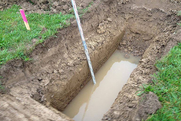 Wo gebaut wird, stellt sich die Frage zur Beurteilung des Untergrundes, das geplante Bauwerk muß ja sicher gegründet werden. Architekt und Statiker verlassen sich hier auf die Angaben des Geotechnikers zum Baugrund und Grundwasser.